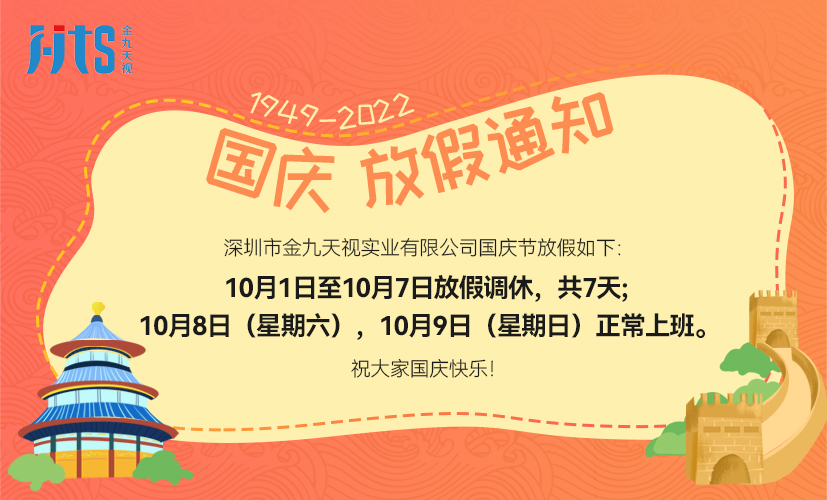 深圳市金九天視實業有限公司2022年國慶節放假通知